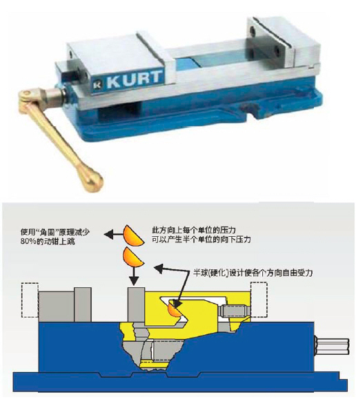 歷史悠久的D系列平口鉗是“角固”式理論較具代表的夾具產(chǎn)品。適用于銑床、磨床及加工中心,用來保證基準(zhǔn)面、平面度和平行度等。廣泛地使用于各種機(jī)械加工場合進(jìn)行精密鉆、鉸、攻絲、磨削等。實(shí)踐證明,只有無與倫比的Kurt角固式平口鉗才可以保證機(jī)械加工的高效和高精度。所有Kurt虎鉗都使用滾針推力軸承,摩擦力小而夾緊力大。